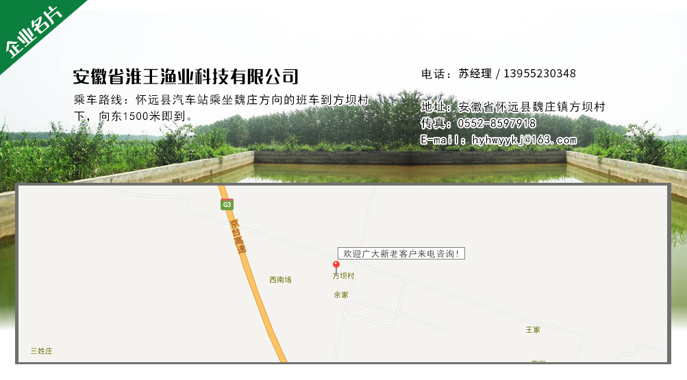 安徽省淮王漁業(yè)科技有限公司是一家股份制民營(yíng)科技企業(yè)。2004年成立,公司以“創(chuàng)新機(jī)制與理念、強(qiáng)調(diào)特色與效益、注重質(zhì)量與品牌、依靠科技與合作、發(fā)展龍頭與產(chǎn)業(yè)”為指導(dǎo)思想,主營(yíng)泥鰍等魚(yú)類苗種繁育、臺(tái)灣泥鰍養(yǎng)殖以及觀光休閑漁業(yè),承擔(dān)了多項(xiàng)國(guó)家、安徽省、市、縣有關(guān)項(xiàng)目的實(shí)施工作。 公司基地位于懷遠(yuǎn)縣魏莊鎮(zhèn)方壩村,懷魏路東1公里,北靠青溝河。這里電力通暢,交通方便,水源充沛,水質(zhì)清新,周邊無(wú)工業(yè)污染。該良種場(chǎng)是我國(guó)以泥鰍、大鱗副泥鰍等鰍科魚(yú)類的種質(zhì)資源保護(hù)和良種繁育為主的泥鰍良種繁育基地。良種場(chǎng)建設(shè)標(biāo)準(zhǔn)是以現(xiàn)代生物技術(shù)為依托,建成集科技化、生態(tài)化、設(shè)施化、休閑化為一體的開(kāi)放式、園林式的國(guó)家級(jí)鰍科魚(yú)類原良種場(chǎng)。 公司現(xiàn)有人員65人,本科以上學(xué)歷6人,技術(shù)研發(fā)人員12人。主要產(chǎn)品是淮王牌泥鰍、大鱗副泥鰍苗種,商...公司環(huán)境展示